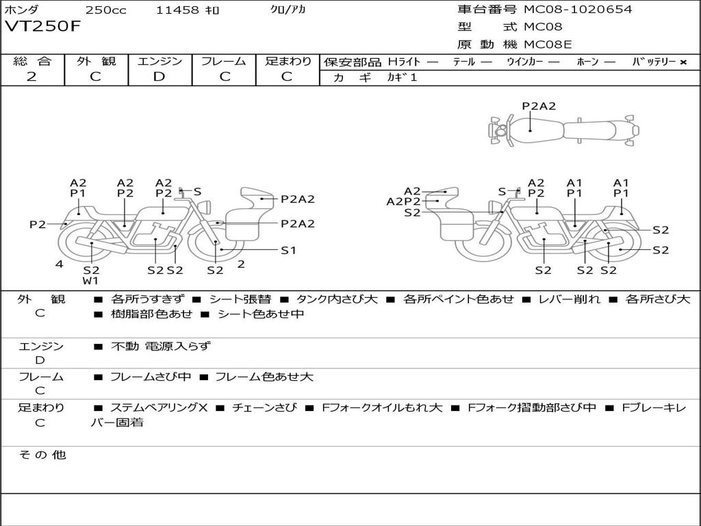 | Номер рамы / VIN | MC08-1020654 |