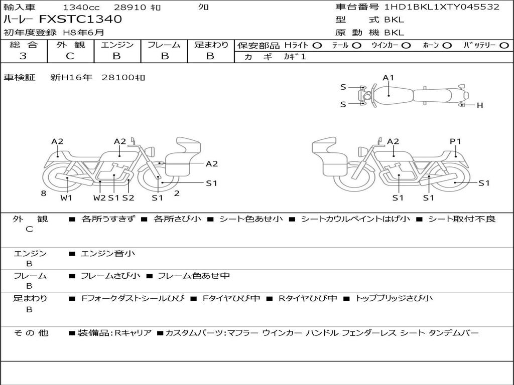 | Номер рамы / VIN | 1HD1BKL1XTY045532 |