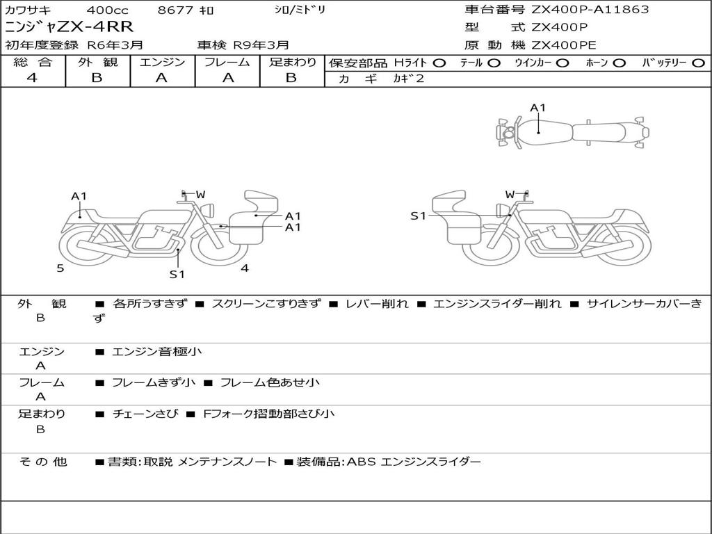| Номер рамы / VIN | ZX400P-A11863 |