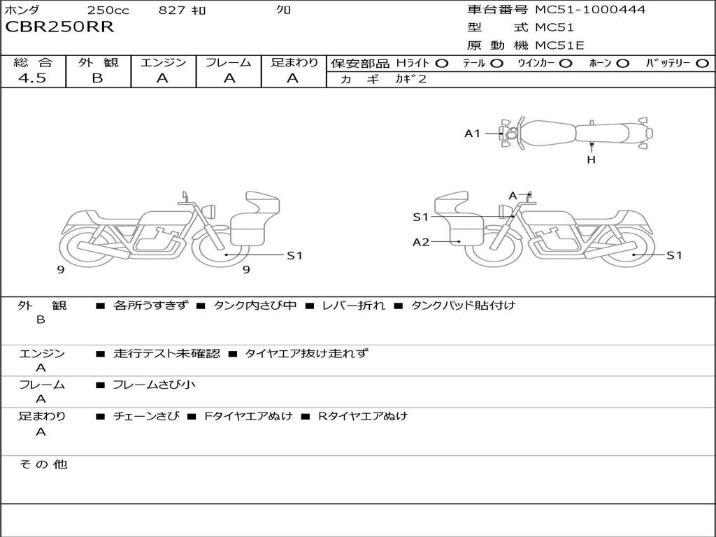 | Номер рамы / VIN | MC51-1000444 |