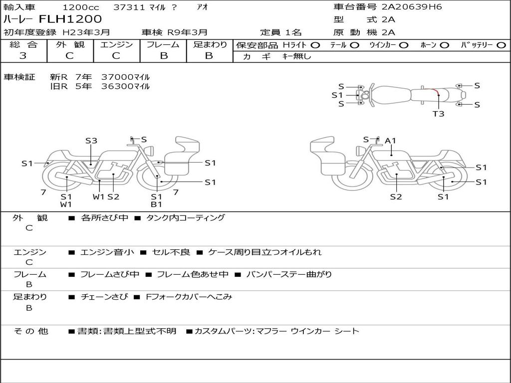 | Номер рамы / VIN | 2A20639H6 |