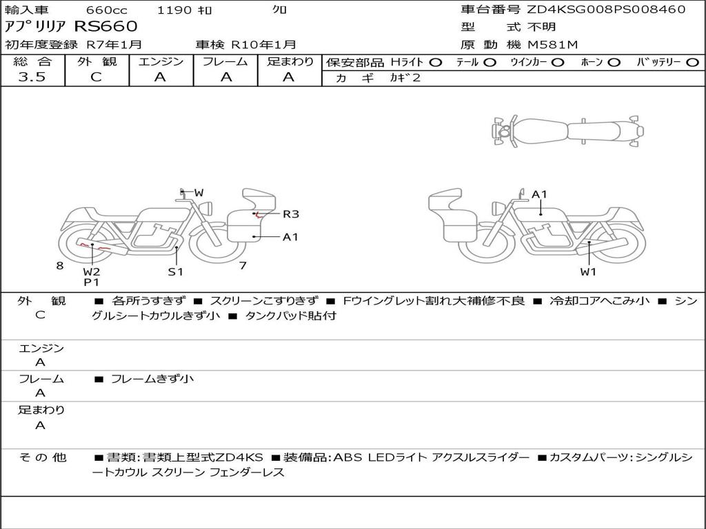 | Номер рамы / VIN | ZD4KSG008PS008460 |