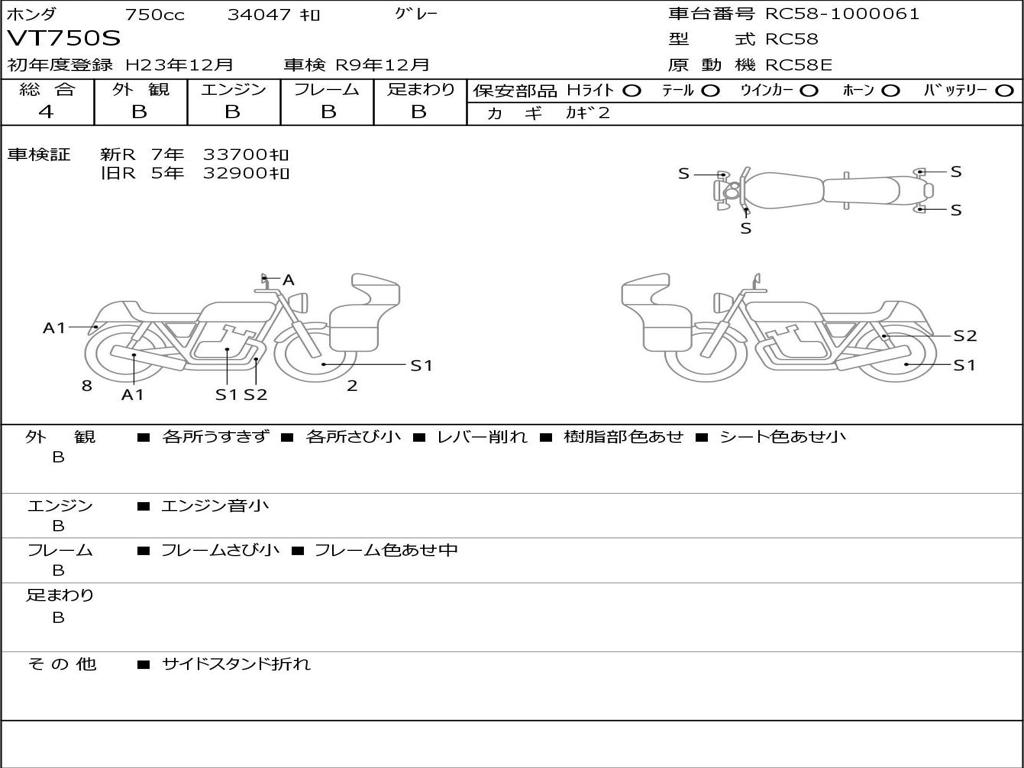 | Номер рамы / VIN | RC58-1000061 |