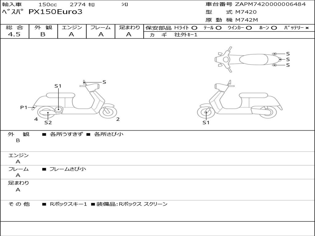 | Номер рамы / VIN | ZAPM7420000006484 |