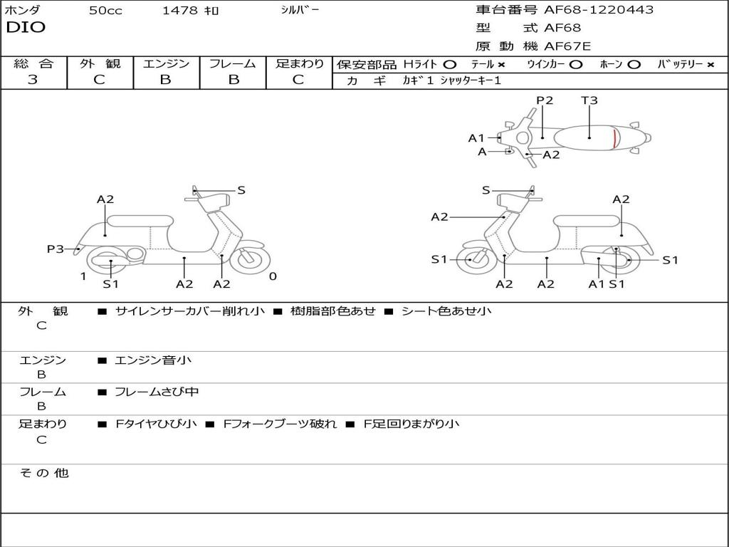 | Номер рамы / VIN | AF68-1220443 |