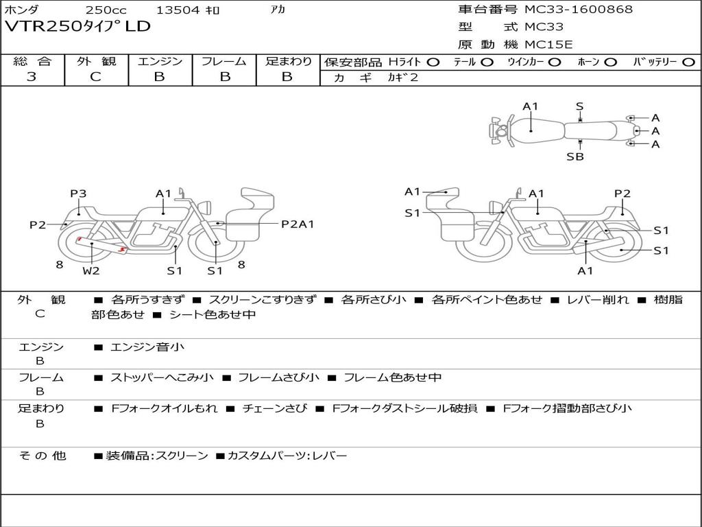 | Номер рамы / VIN | MC33-1600868 |