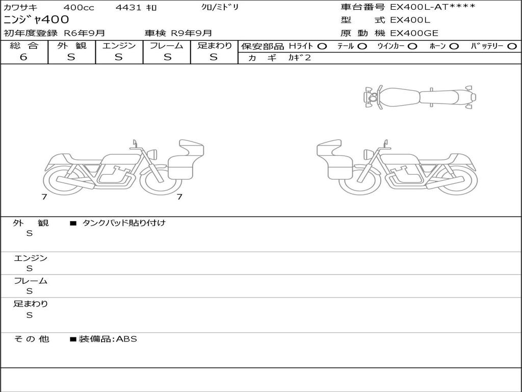 | Номер рамы / VIN | EX400L-AT9836 |