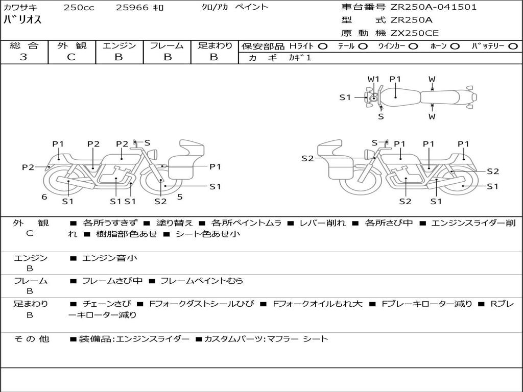 | Номер рамы / VIN | ZR250A-041501 |