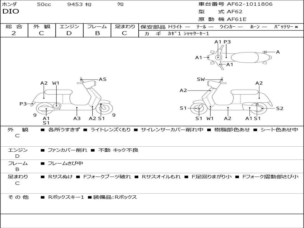 | Номер рамы / VIN | AF62-1011806 |