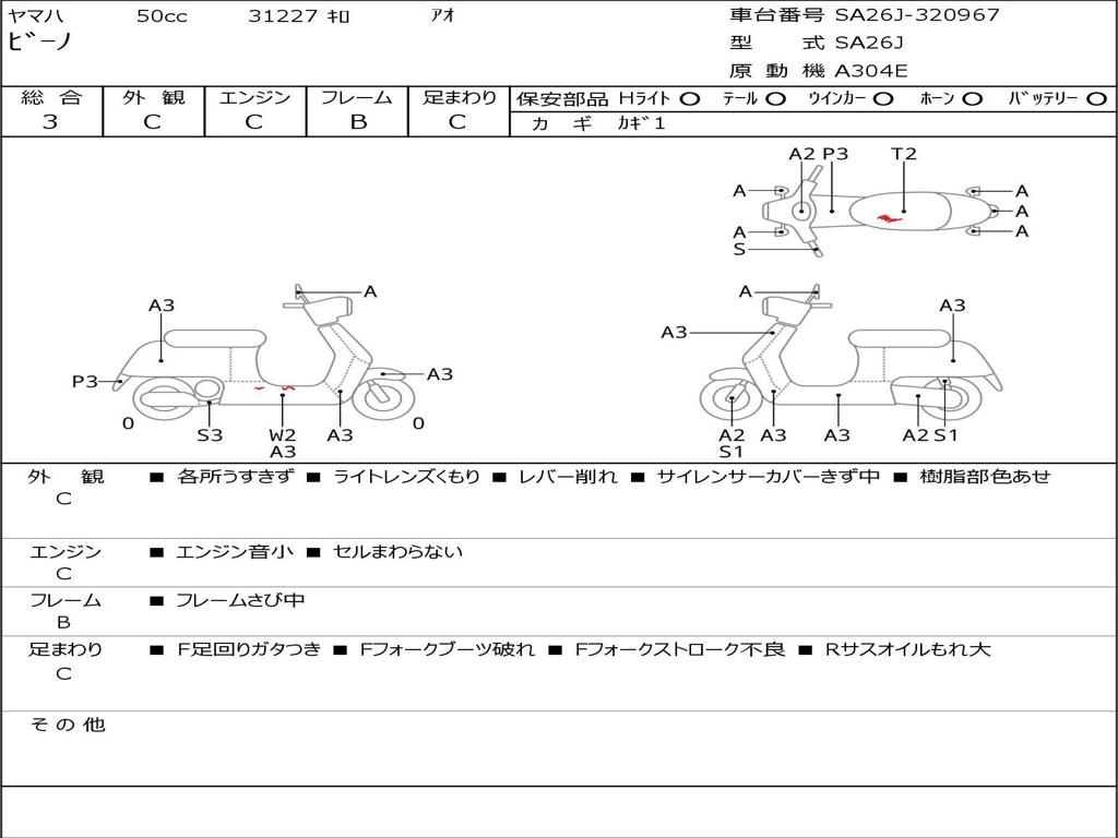 | Номер рамы / VIN | SA26J-320967 |