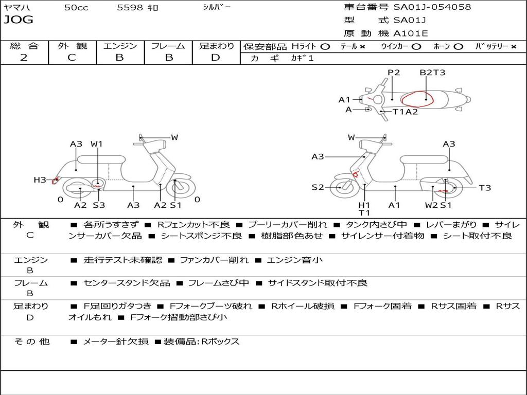 | Номер рамы / VIN | SA01J-054058 |