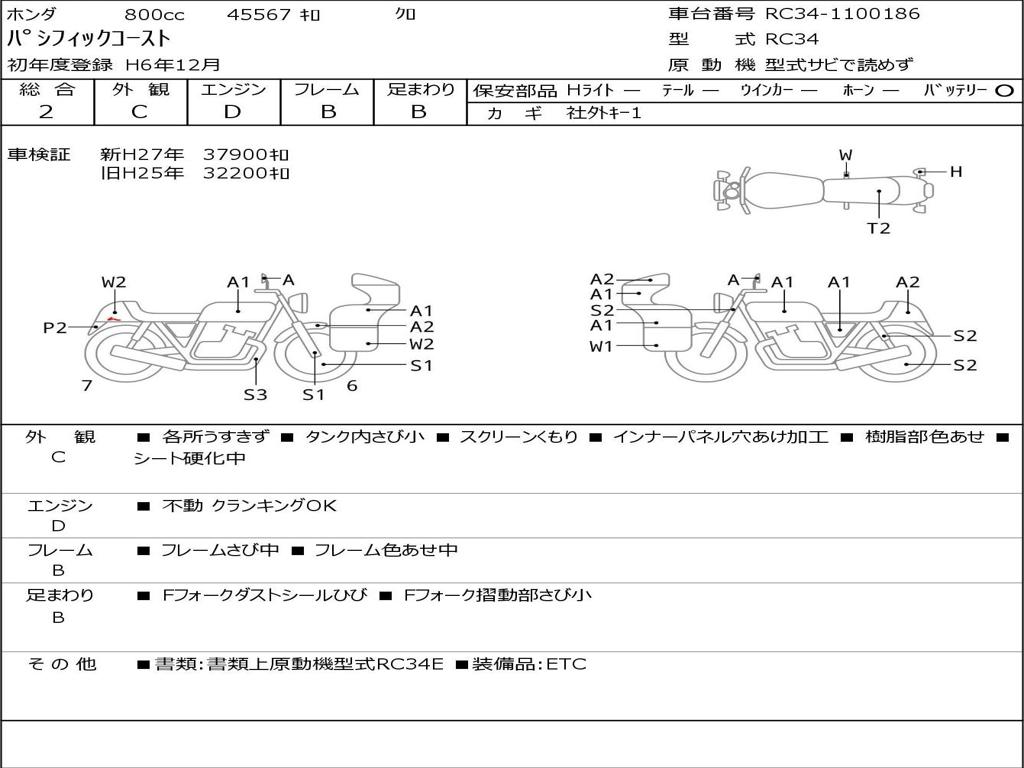 | Номер рамы / VIN | RC34-1100186 |