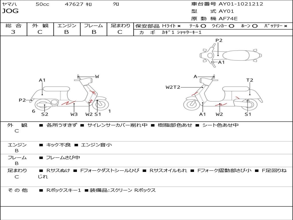 | Номер рамы / VIN | AY01-1021212 |
