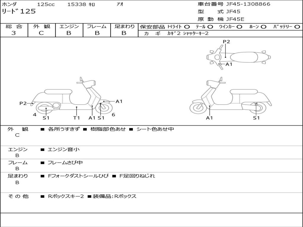 | Номер рамы / VIN | JF45-1308866 |