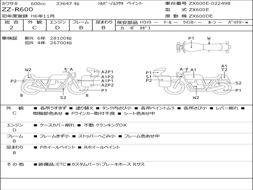 | Номер рамы / VIN | ZX600E-022498 |