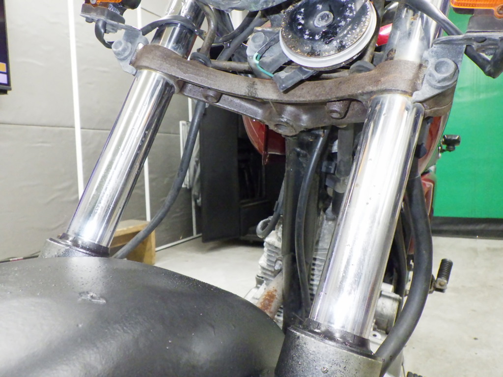| внешняя часть вилки | следы коррозии <много>, потек масла <много> |