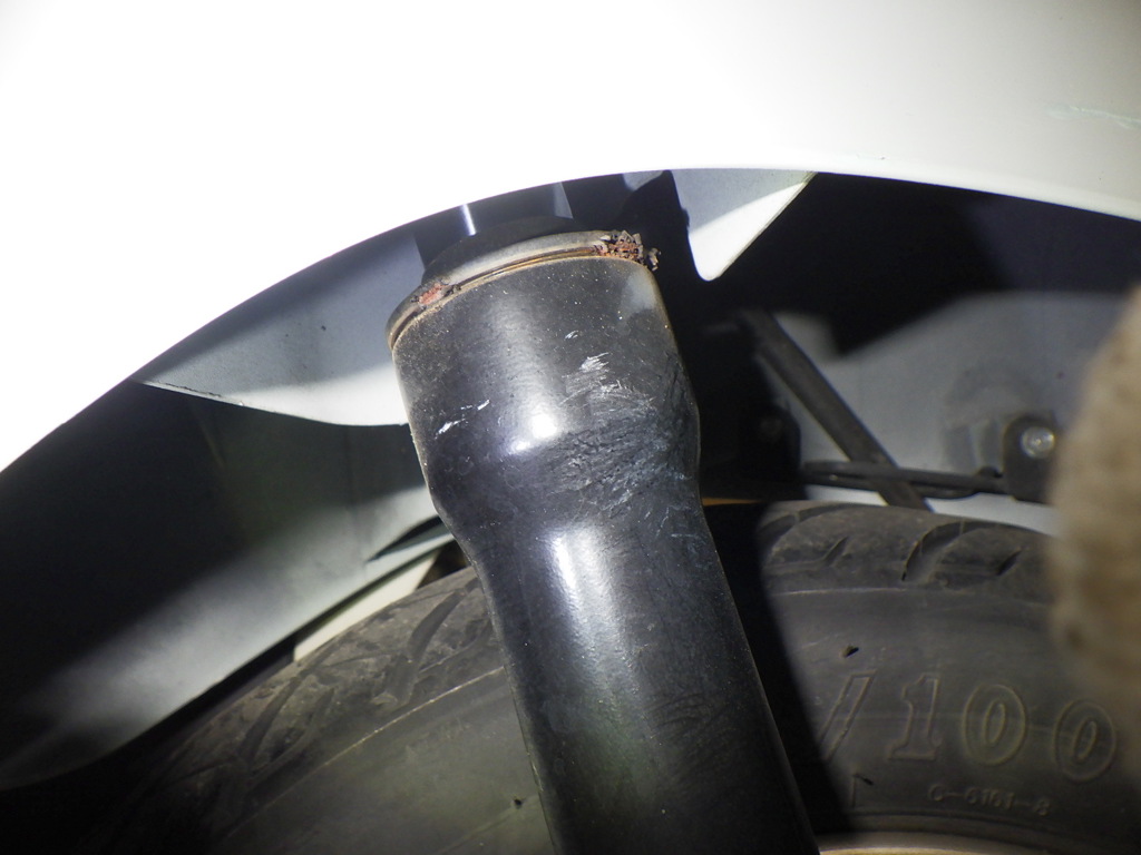 | внешняя часть вилки | следы коррозии <много>, paintswelled <средне>, неисправен сальник |
