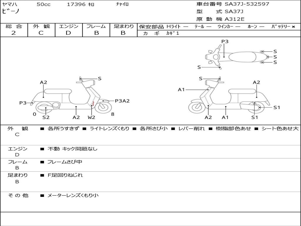 | Номер рамы / VIN | SA37J-532597 |