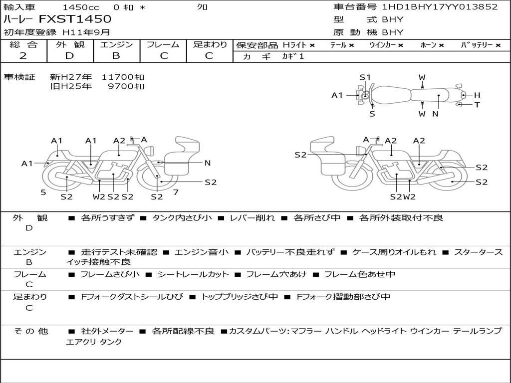| Номер рамы / VIN | 1HD1BHY17YY013852 |