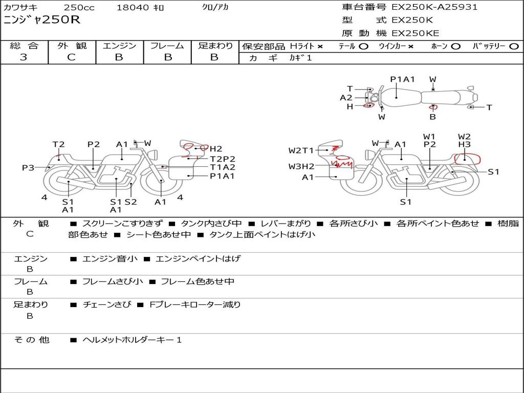| Номер рамы / VIN | EX250K-A25931 |