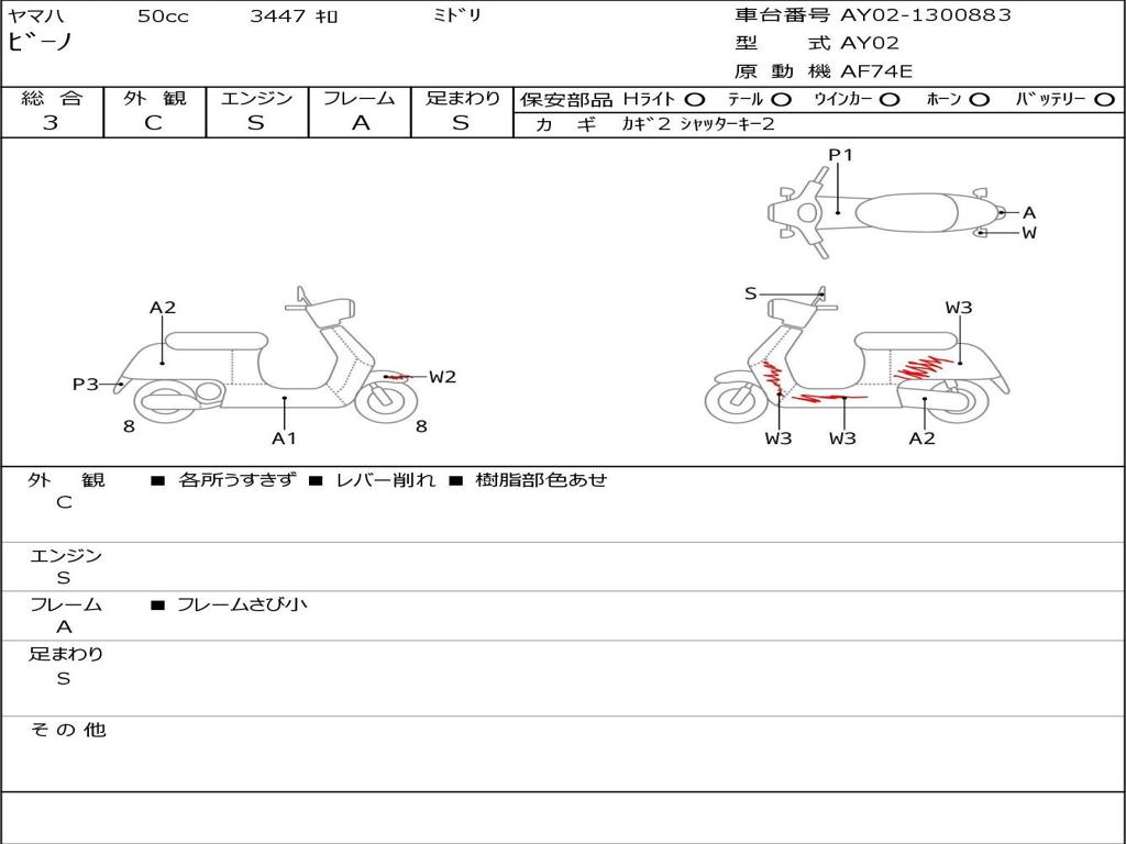 | Номер рамы / VIN | AY02-1300883 |