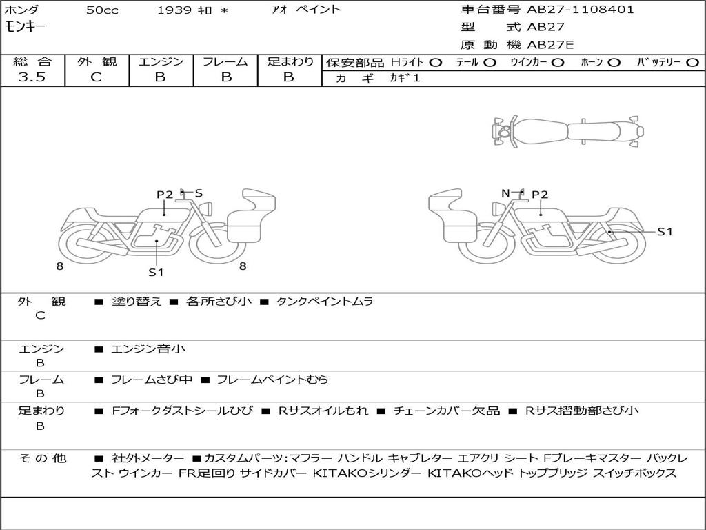| Номер рамы / VIN | AB27-1108401 |