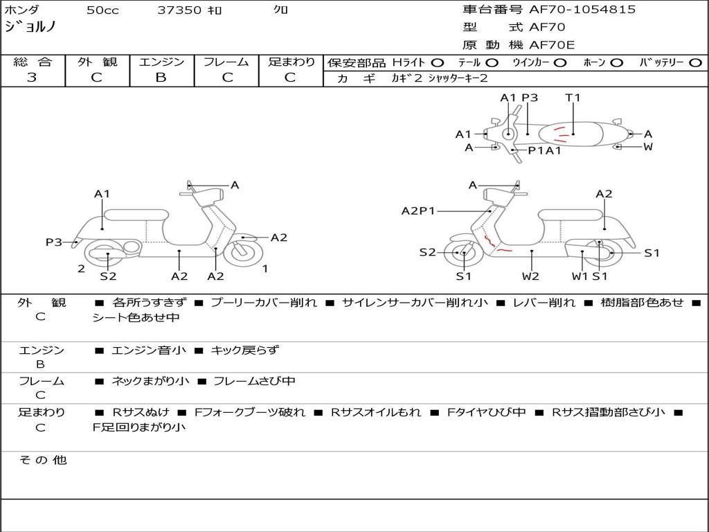 | Номер рамы / VIN | AF70-1054815 |