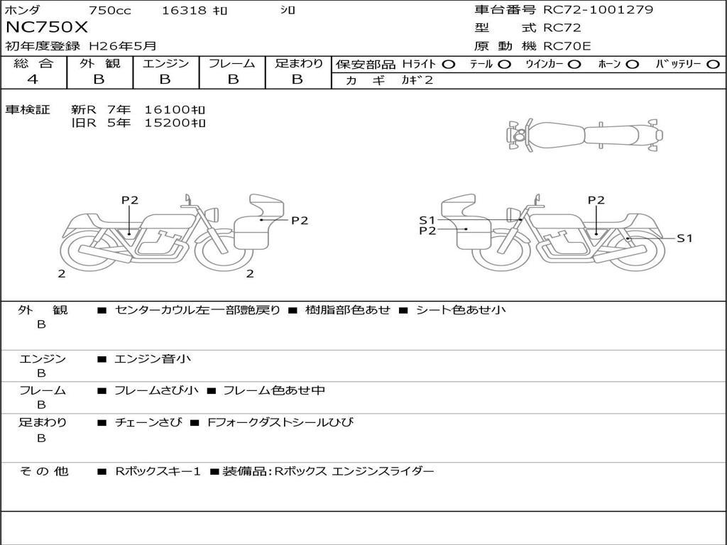 | Номер рамы / VIN | RC72-1001279 |