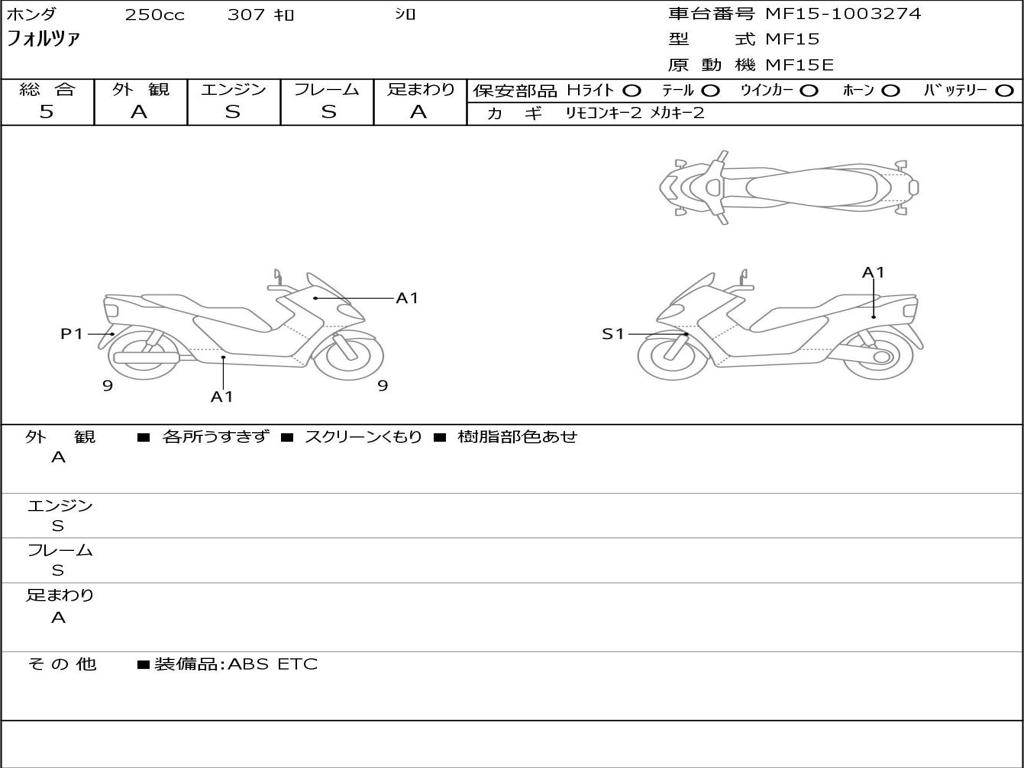 | Номер рамы / VIN | MF15-1003274 |