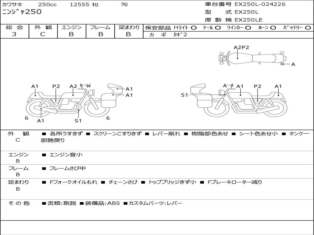 | Номер рамы / VIN | EX250L-024226 |