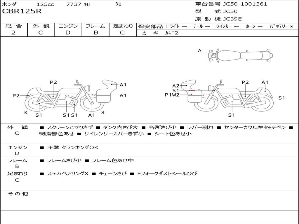 | Номер рамы / VIN | JC50-1001361 |