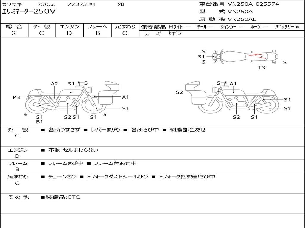 | Номер рамы / VIN | VN250A-025574 |