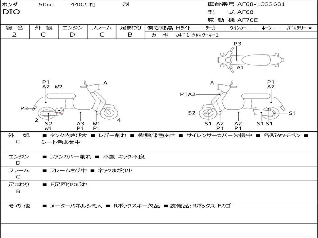 | Номер рамы / VIN | AF68-1322681 |