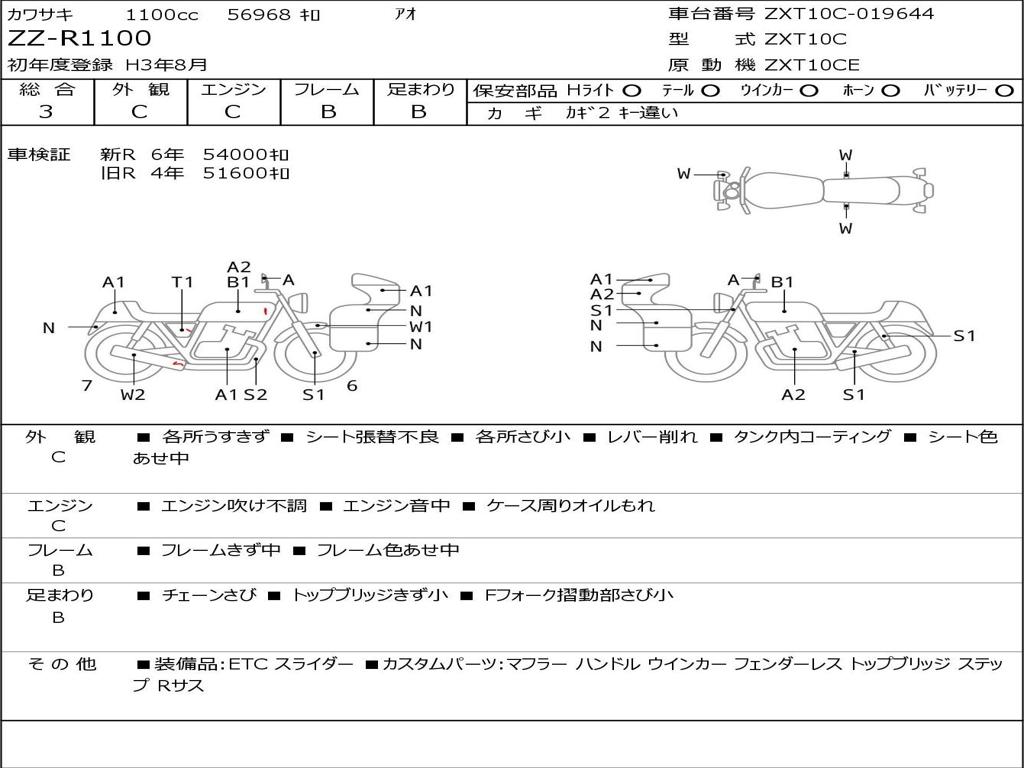 | Номер рамы / VIN | ZXT10C-019644 |