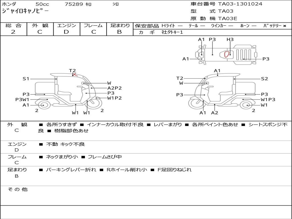 | Номер рамы / VIN | TA03-1301024 |