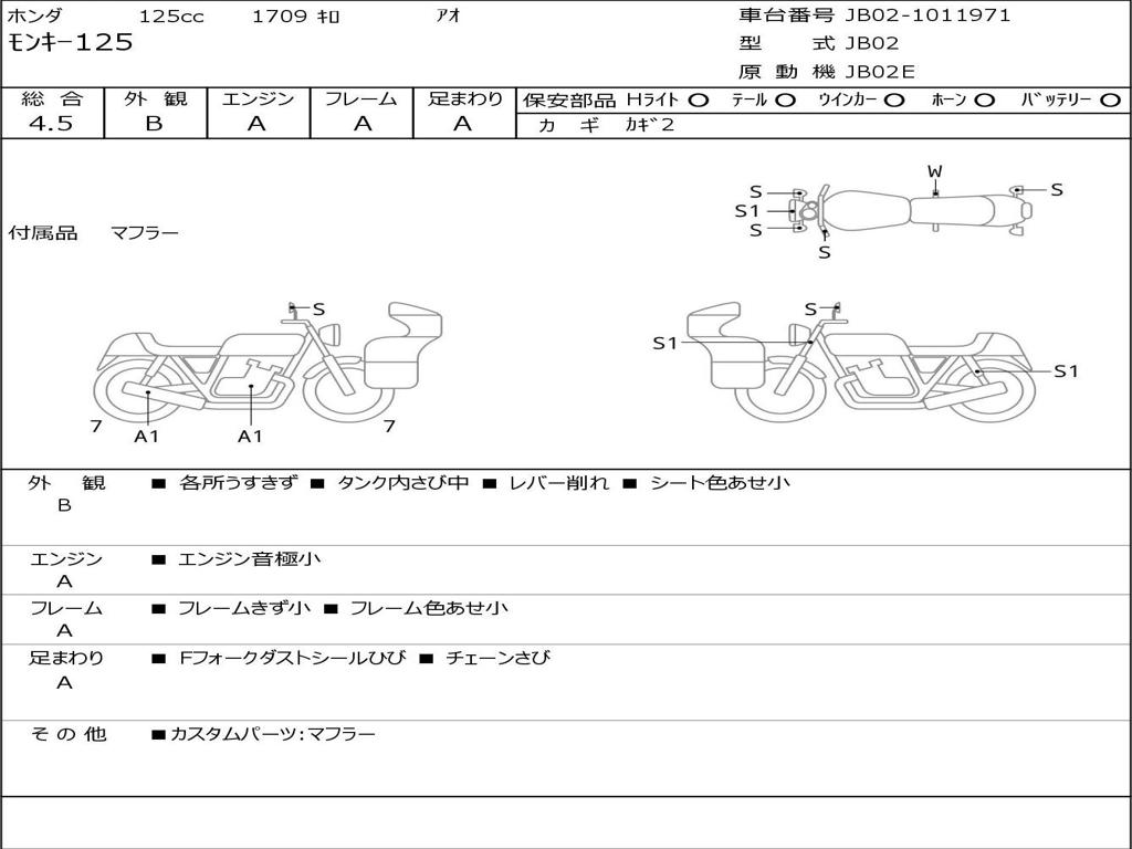 | Номер рамы / VIN | JB02-1011971 |