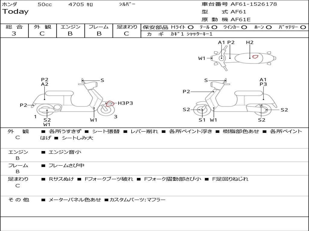 | Номер рамы / VIN | AF61-1526178 |