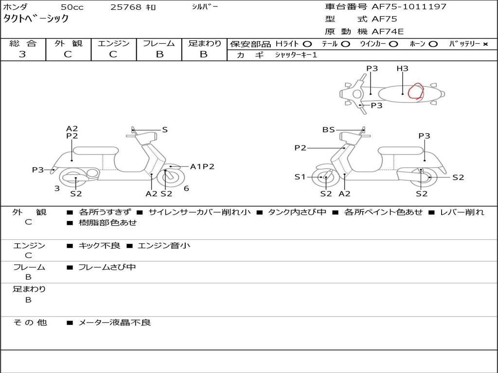 | Номер рамы / VIN | AF75-1011197 |