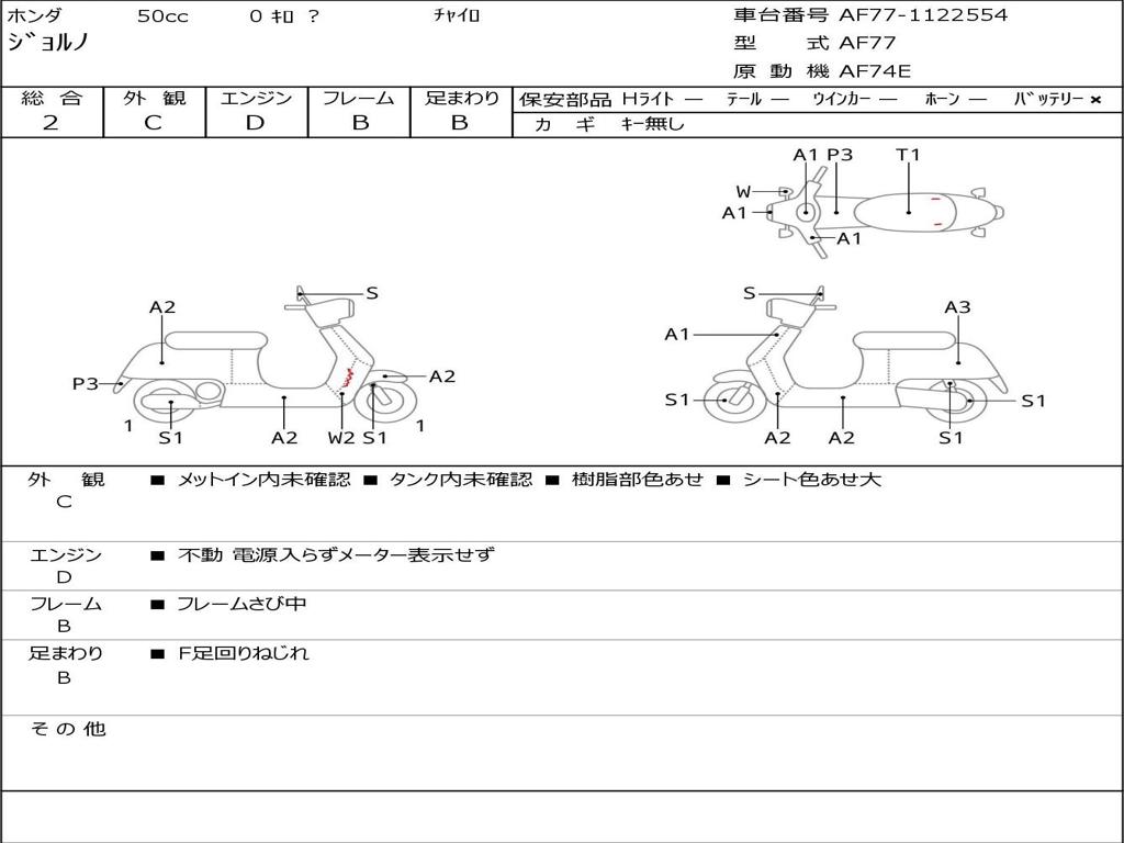 | Номер рамы / VIN | AF77-1122554 |
