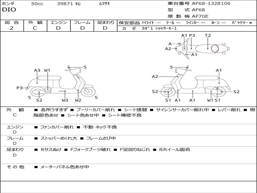 | Номер рамы / VIN | AF68-1328106 |