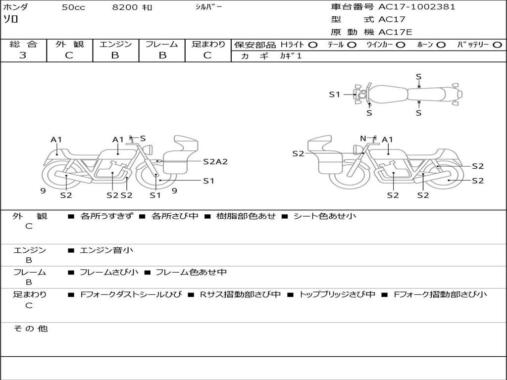 | Номер рамы / VIN | AC17-1002381 |