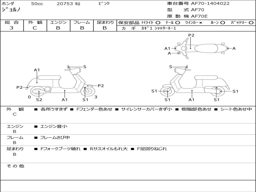 | Номер рамы / VIN | AF70-1404022 |