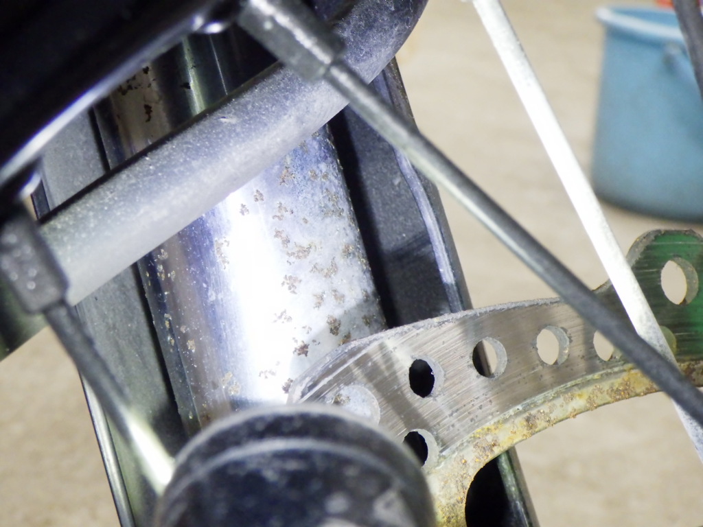 | внешняя часть вилки | следы коррозии, потек масла <много> |