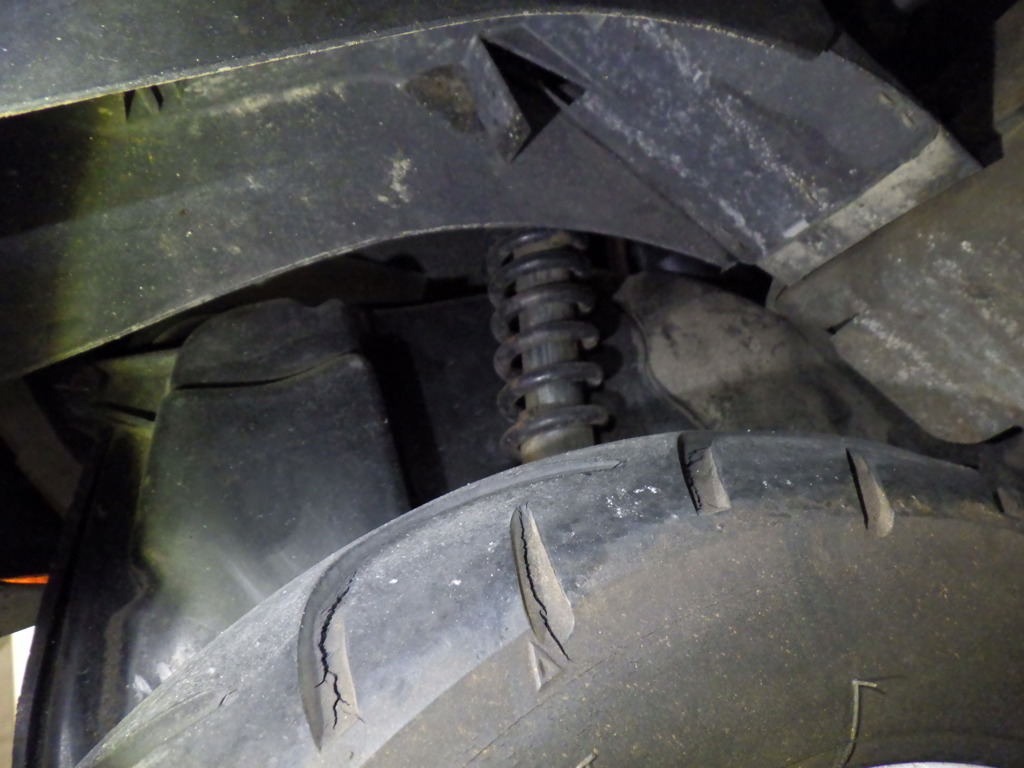 | шина | трещины, требует замены |