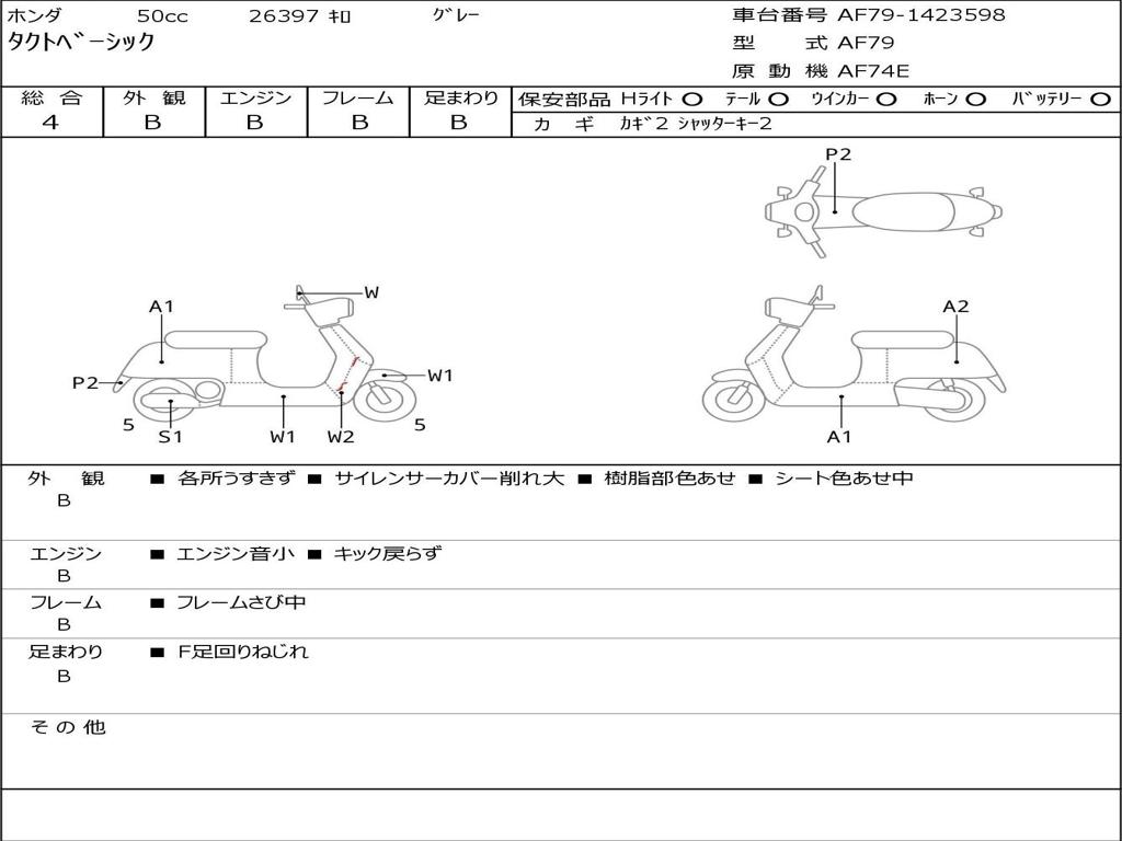 | Номер рамы / VIN | AF79-1423598 |