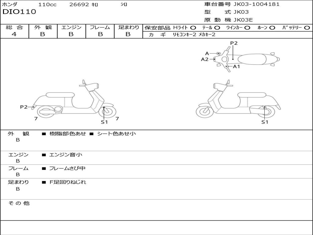 | Номер рамы / VIN | JK03-1004181 |