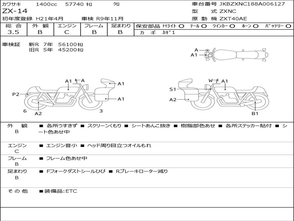 | Номер рамы / VIN | JKBZXNC188A006127 |