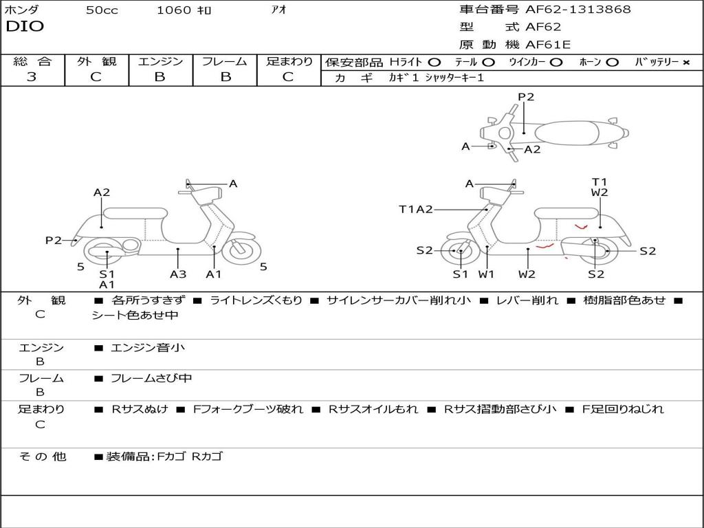 | Номер рамы / VIN | AF62-1313868 |