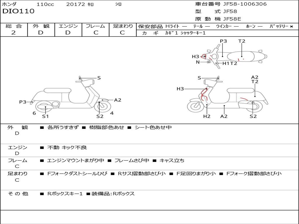 | Номер рамы / VIN | JF58-1006306 |