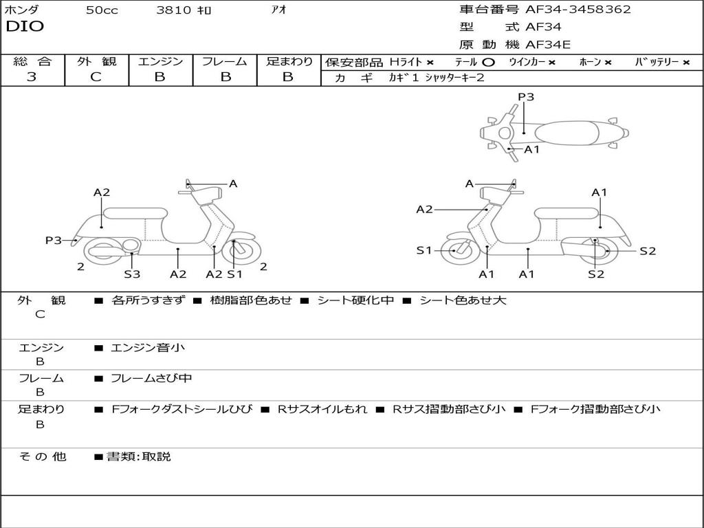 | Номер рамы / VIN | AF34-3458362 |